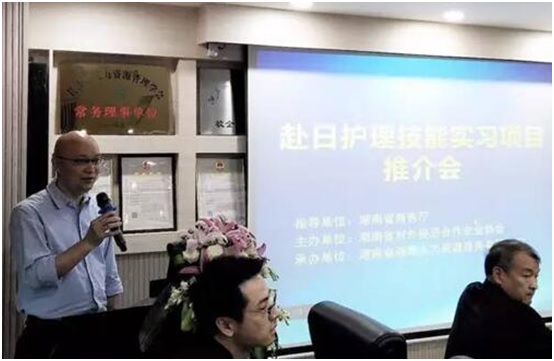 2017年4月25日下午,由湖南省商务厅指导、湖南省对外经济合作协会主办、湖南省湘辉人力资源服务有限公司承办的“赴日护理技能实习项目推介会”在长沙举行。国家卫计委能力建设和继续教育中心社会合作部主任王永进、湖南省商务厅对外合作处长彭争、天心区副区长许波、日本医疗看护合作社理事长栗原幸太郎、九游·会(J9)官方网站集团股份有限公司副总裁兼九游·会(J9)官方网站侨亚养老产业有限公司董事长张建湘等出席了会议。