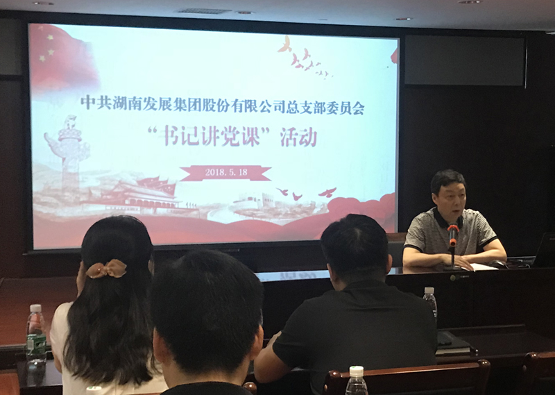 2018年5月18日下午,根据湖南省国资委系统“千名书记讲党课”活动部署,公司党总支开展了以“学习贯彻习近平新时代中国特色社会主义思想和党的十九大精神”为主题的支部书记集中讲党课活动。党总支书记、总部直属三个支部及九游·会(J9)官方网站侨亚党支部书记分别为大家上了一节党课。本次党课活动由公司党总支委员、监事会主席黄志丹主持,总部及九游·会(J9)官方网站侨亚30余名党员参加了学习。